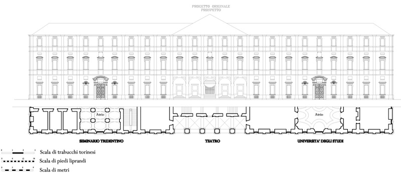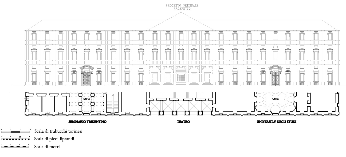 Prospetto del complesso dell’Università degli Studi, del Regio Teatro e del Seminario Tridentino